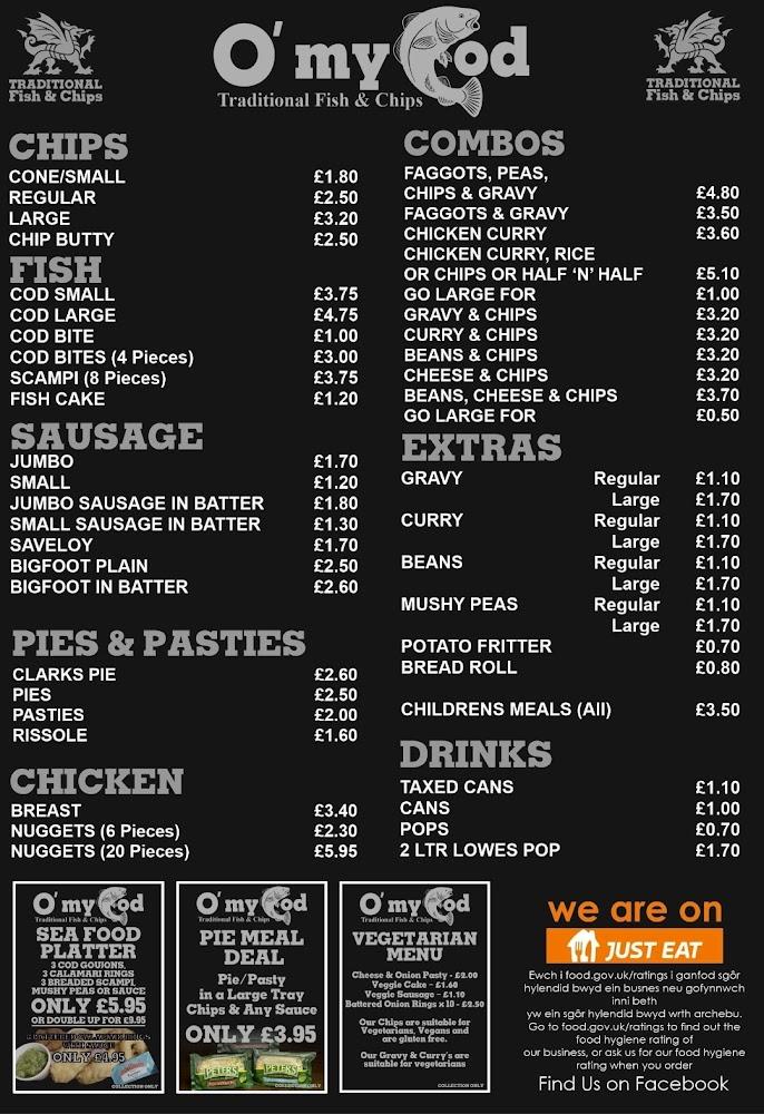 Nestled in the heart of Bridgend, O' My Cod captures the essence of a quintessential British fish and chips shop. The location, easily accessible at 66 Nolton St, boasts a friendly atmosphere where families and friends can enjoy quality meals together. As a local favorite, O' My Cod prides itself on using only the freshest ingredients, particularly fish caught daily, ensuring every serving reflects the rich maritime tradition of British cuisine.